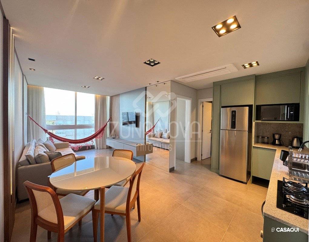 01 dormitório, 48 m² privativos, de frente, vista liberada para avenida central de Atlântida, mobiliado e decorado, ambientes climatizados, living com com sala de estar, sala de jantar, cozinha totalmente equipada, banho social, esquadrias em PVC, teto com rebaixo em gesso, alto padrão em acabamento, gás central, água quente e vaga de garagem para carro. Empreendimento de alto padrão, localizado em Atlântida na avenida Central, hall de entrada decorado, infraestrutura de resort completa. Entre em contato para mais informações.