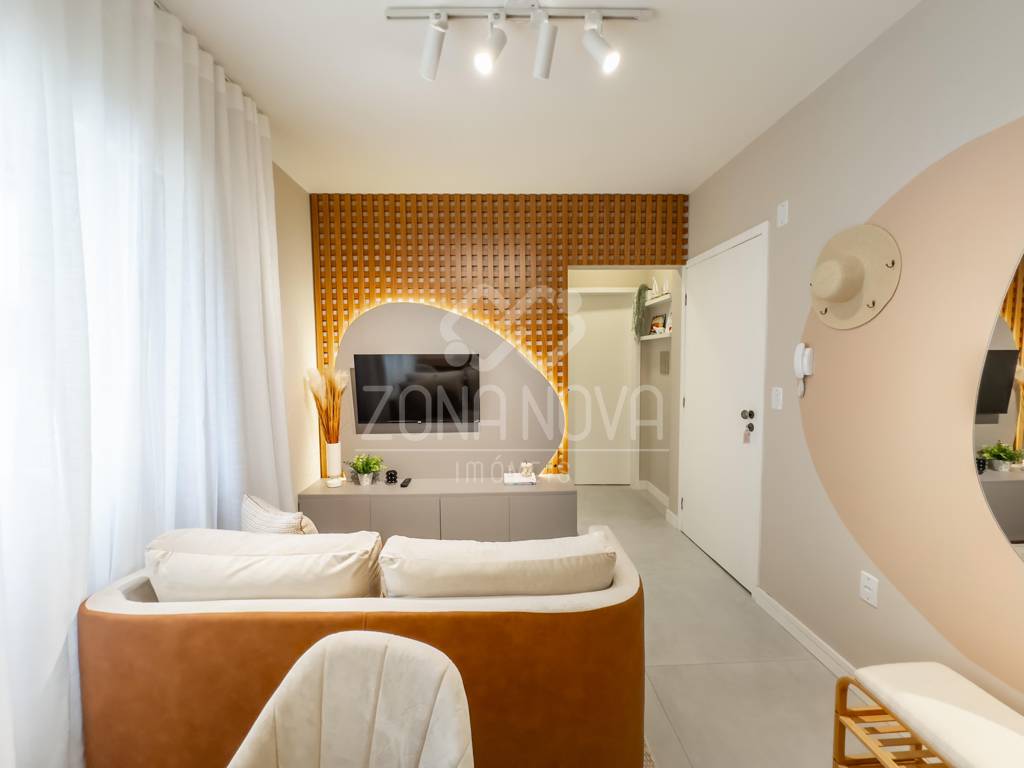 Apartamento de 01 dormitório, mobiliado e decorado, 41 m², ambientes todos integrados sendo: sala de estar, cozinha com churrasqueira, ambientes climatizados, sala de jantar, dormitório, banho social, área de serviço separada, gás central, água quente, esquadrias em PVC, vista liberada e vaga de garagem. Edificio com hall de entrada mobiliado, elevador, localizado no bairro Zona Nova, próximo ao mar e junto a praça Flávio Boianovski. Entre em contato para mais informações.