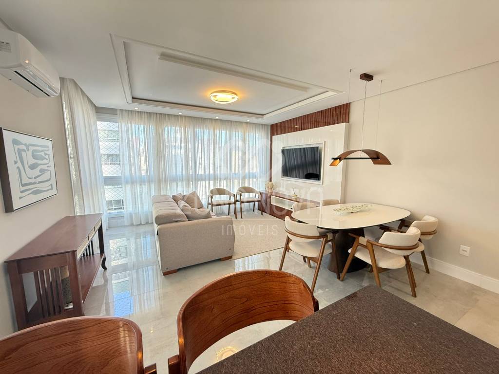 Apartamento novo, mobiliado e decorado, localizado entre os bairros Navegantes e Centro, local nobre! Imóvel composto por 03 dormitórios, sendo uma suíte, banheiro social, lavabo, living espaçoso e com ambientes integrados, sacada integrada com vista livre, cozinha equipada com churrasqueira, área de serviço separada, vaga de garagem, água quente, gás central e ar Split em todos os ambientes. Edifício novo com ótimo padrão construtivo, conta com salão de festas no rooftop, hall decorado, 02 elevadores e zeladoria permanente. Saiba mais!