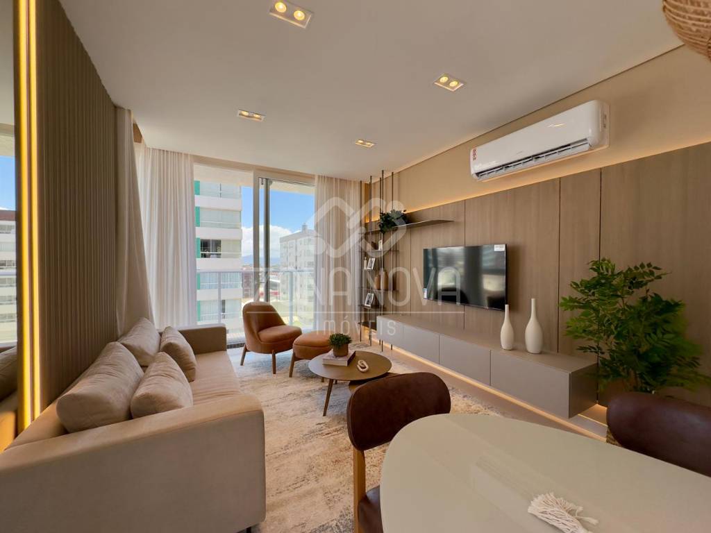 Apartamento novo e nunca habitado feito pela construtora Pugen, 93 M² privativos, mobiliado, decorado e equipado, 03 dormitórios (01 suíte), banheiro social, lavabo, todos quartos virados para a rua, living com os ambientes integrados, sacada de frente com vista liberada, cozinha americana com churrasqueira, área de serviço separada, água quente instalada, todos ambiente climatizados e vaga de garagem. Edifício novo com infraestrutura completa, hall decorado, 02 elevadores, zeladoria, próximo dos comércios para o dia a dia e a poucos minutos da beira mar.