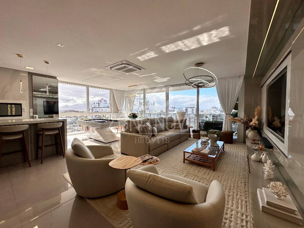 Apartamento de alto padrão com vista para o mar e serra, mobiliado e decorado/pronto para uso, com 03 dormitórios (01 suíte), banheiro social, lavabo, living amplo com os ambientes integrados, sala de TV, sala de jantar, mesa de bilhar, sacada de frente com vista liberada, cozinha americana com churrasqueira, área de serviço separada, ambientes climatizados, gás central, água quente e 02 vagas de garagem. Edifício de esquina feito pela Pugen, com rooftop e infraestrutura completa, hall decorado, 02 elevadores e zeladoria, próximo aos melhores restaurantes da cidade, à poucos metros do mar e a avenida Ubirajara!