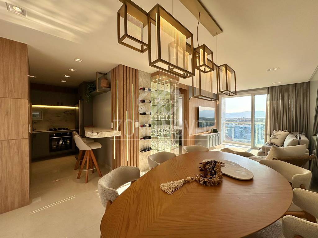 Apartamento de alto padrão, mobiliado e decorado, com sacada, vista panorâmica para a serra e cidade, são 02 dormitórios/01 suíte, 98,09 m² de área total, frente oeste, ambientes integrados, sala de estar, sala de jantar, cozinha separada, área gourmet com churrasqueira, lavanderia separada, água quente, gás central, todos os ambientes climatizados e vaga de garagem para 02 carros. Edificio novo, infraestrutura completa sendo no térreo: salão de festas, piscina aquecida, mais rooftop com terraço grande com ambientes de lazer, vista para a cidade e mar, mais um salão de festas, academia, hall de entrada decorado, 02 elevadores e zeladoria permanente. Entre em contato para mais informações.