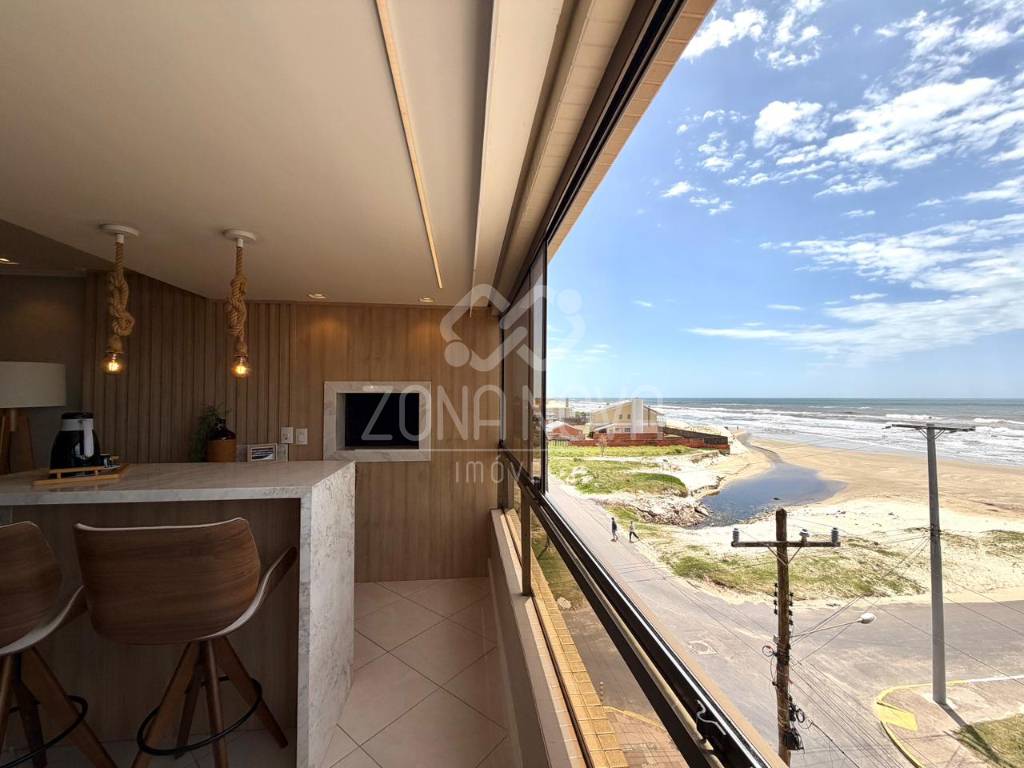 Belo apartamento mobiliado e equipado, de frente para o mar, 90 m² privativos, living amplo, sala de estar e jantar integradas, sacada com gourmet, cozinha, área de serviços separada, gás central, água quente instalada, ambientes climatizados, 02 dormitórios (01 suíte), banheiro social e vaga de garagem. Edifício de esquina com 02 elevadores, hall mobiliado, zeladoria, próximo dos comércios e praças!