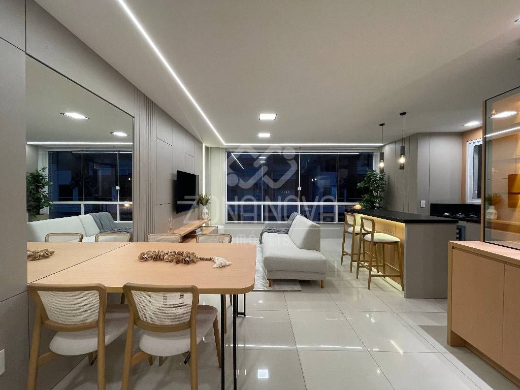 Apartamento mobiliado e decorado, 112 m² de área privativa, 02 dormitórios/01 suíte, terraço lateral amplo com churrasqueira e pia de apoio, living com sala de estar, sala de jantar, cozinha com bancada, teto com rebaixo em gesso, iluminação em LED, área de serviço separada, aquecedor a gás instalado, todos os ambientes climatizados, gás central, banho social e vaga de garagem. Localizado no bairro Zona Nova, 02 quadras do mar, junto a 03 praças, sendo uma delas a Praça Flávio Boianovski, edifício com elevador, hall de entrada mobiliado e zeladoria permanente. Entre em contato para mais informações.