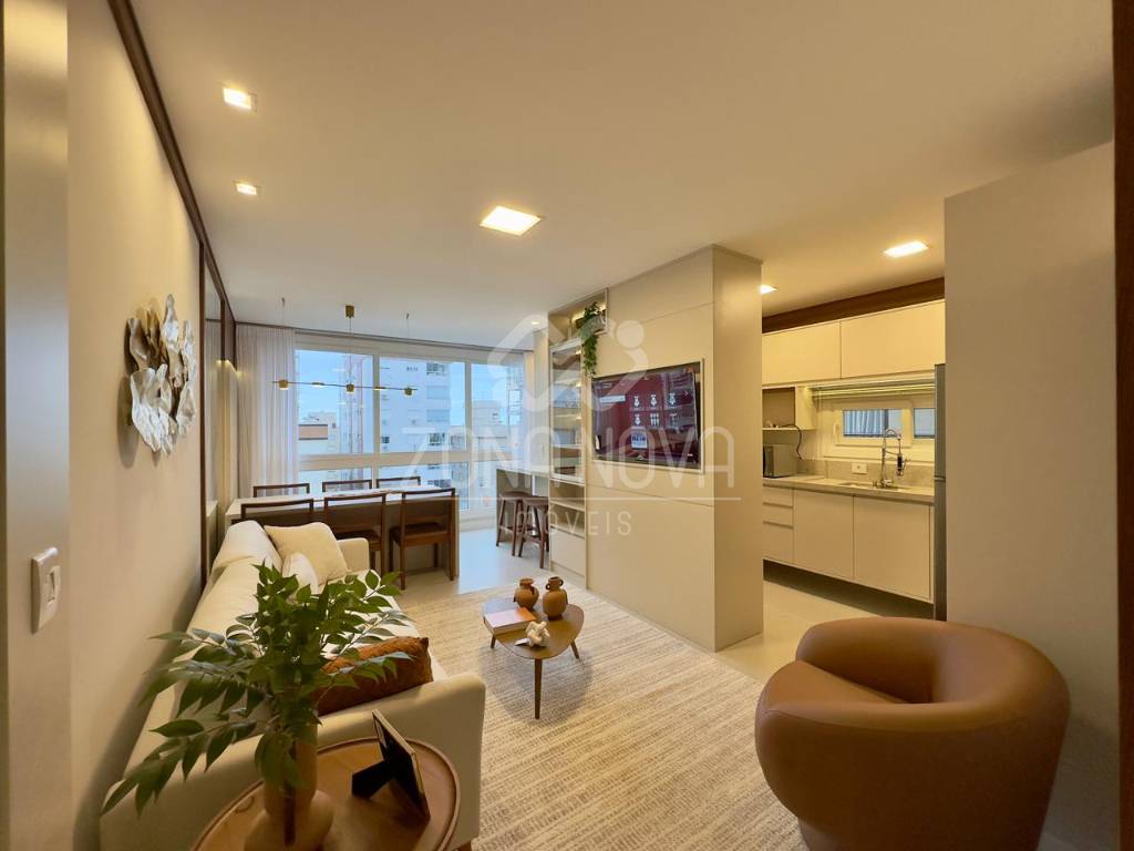 Apartamento de frente com vista liberada, mobiliado decorado/pronto para uso, dois dormitórios sendo uma suíte, banheiro social, living com ambientes integrados, cozinha, churrasqueira + bancada, área de serviço, ambientes climatizados, água quente instalada, gás central, alto padrão construtivo e vaga de garagem. Edifício junta à praça há poucos metros do mar e próximo dos comércios para o dia a dia, conta com Rooftop, salão de festas, elevador, hall de entrada decorado e Zeladoria.