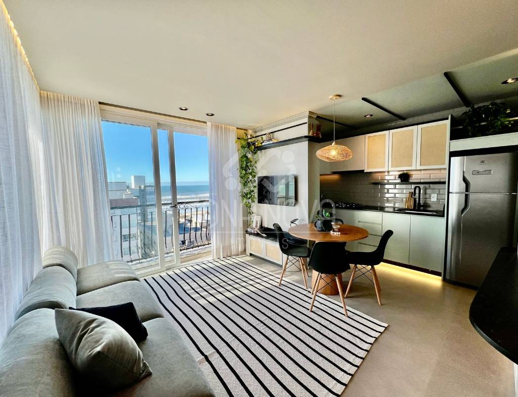 Vista mar, junto à Flávio Boianovski! Apartamento com sacada de frente, vista para o mar e praça, leste/norte à uma quadra do mar, mobiliado e decorado com 02 suítes, lavabo, living com os ambientes integrados, cozinha com churrasqueira, área de serviço, ambientes climatizados, água quente, gás central e vaga de garagem. Edifício novo com hall decorado, elevador, rooftop com salão de festas e piscina, está pronto para usufruir!