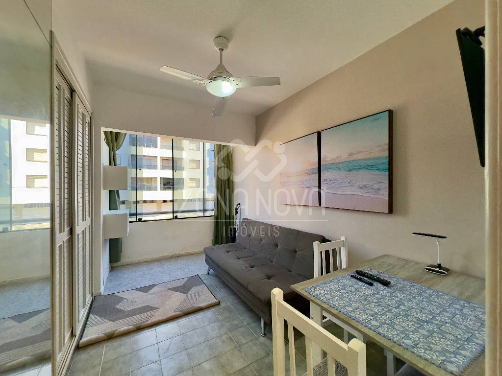 De frente à uma quadra do mar, junto a praça Flávio Boianovisk! Apartamento JK com 25 M², mobiliado, de frente, banheiro social, living com sacada integrada, vista liberada, cozinha equipada . Edifício com hall de entrada e zeladoria permanente, junto aos comércios locais e a poucos metros do mar.