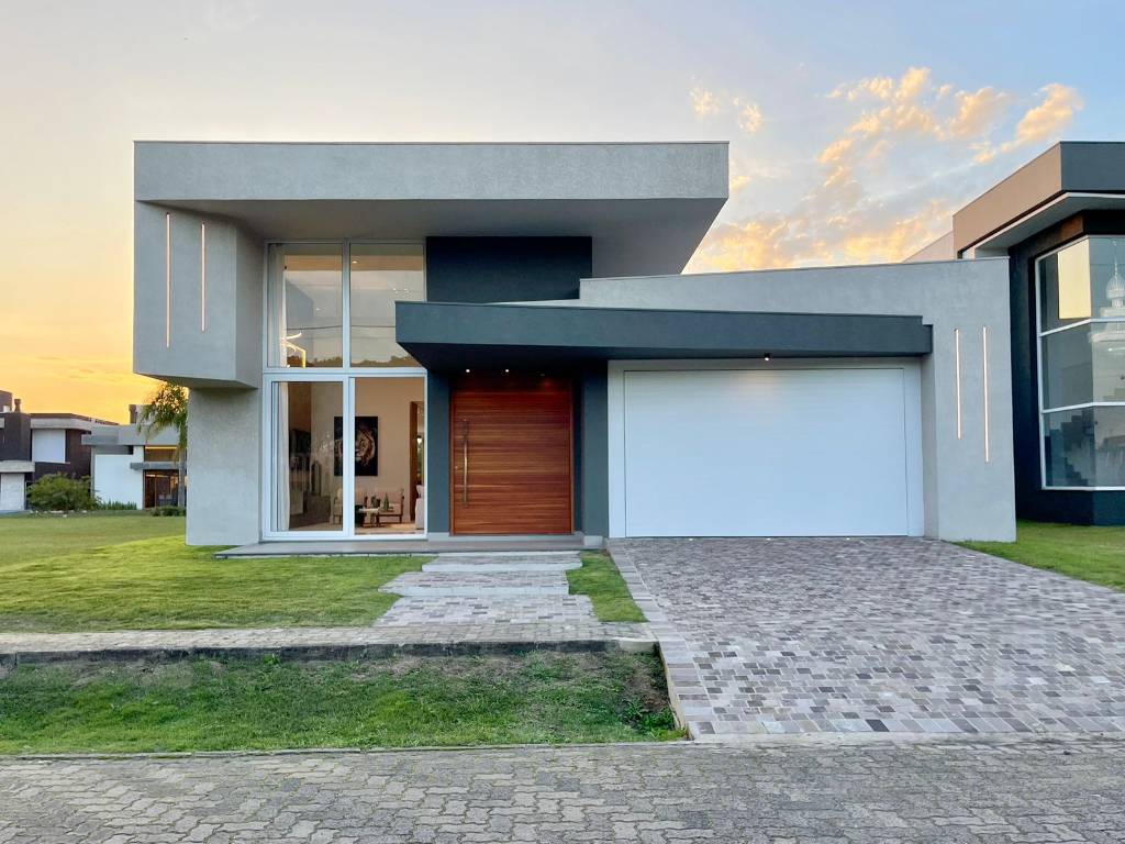 Casa térrea no condomínio Capão Ilhas Resort, em Capão da Canoa, condomínio a beira da lagoa dos Quadros, com infraestrutura completa e acesso a lagoa. Imóvel com 310 M², mobiliado e decorado/pronto para uso, com 04 suítes (02 americanas e 02 individuais, sendo 01 master), living com pé direito alto e lareira, lavabo, ambientes integrados, cozinha americana com espaço gourmet, lavanderia, área de lazer externa com piscina de concreto + área verde com ponte e riacho, garagem e fechada para dois carros.