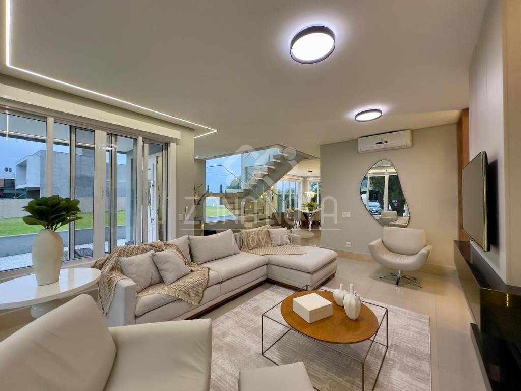 Imóvel mobiliado e decorado com 230 M², 04 suítes individuais (01 com sacada), lavabo, living com os ambientes integrados, sala de TV com lareira a lenha, sala de jantar, cozinha americana com churrasqueira de canto aberto, área de serviço separada, ambientes climatizados, água quente instalada, esquadrias em PVC, área externa com pátio amplo, espaço de lazer, paisagismo e fachada minimalista.