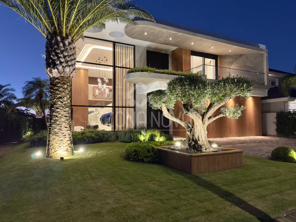 Casa de luxo a beira da marina, no condomínio náutico Velas da Marina! Residência de alto padrão, nova e nunca habitada, com 596 M², em um lote de 665 M², garagem fechada para 02 carros, está finamente mobiliada e decorada/pronta para uso, conta com 05 suítes (01 master), living com pé direito duplo, lareira ecológica, lavabo, elevador, espaço kids, adega subterrânea, ambientes integrados, sala de jantar, cozinha americana com espaço gourmet (churrasqueira giratória e chopeira), sala de Tv com retroprojetor, som ambiente, todos ambientes climatizados, área externa a beira da lagoa, com piscina de concreto + fire place, paisagismo e fachada com arquitetura contemporânea.