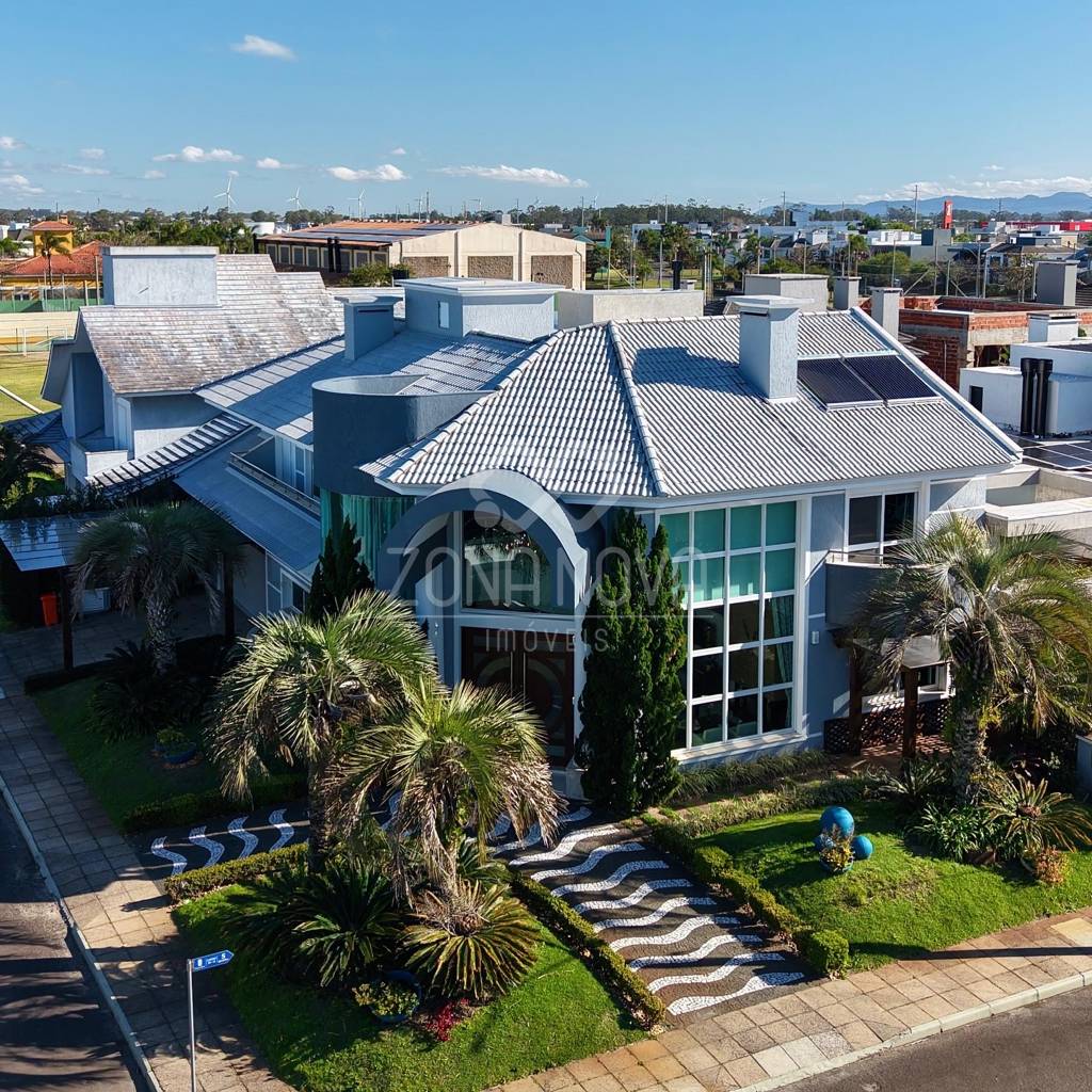 Condomínio Condado de Capão, em Capão da Canoa. Sobrado com 354,47 m² de área construída, 436,47 m² de terreno, mobiliado, 04 suítes/01 suíte master, living com ambientes integrados, sala de estar com lareira e pé direito duplo, sala de TV, sala de jantar, cozinha com bancada + espaço gourmet integrado, rebaixo em gesso, lavabo, ambientes climatizados, lavanderia, home office, adega, área de lazer com pergolado de madeira, ofurô, paisagismo e garagem para carros. Condomínio com portaria/segurança 24 horas, infraestrutura completa e com praia artificial, fácil acesso estando na avenida principal de acesso a cidade e próximo ao centro da cidade. Entre em contato para mais informações.