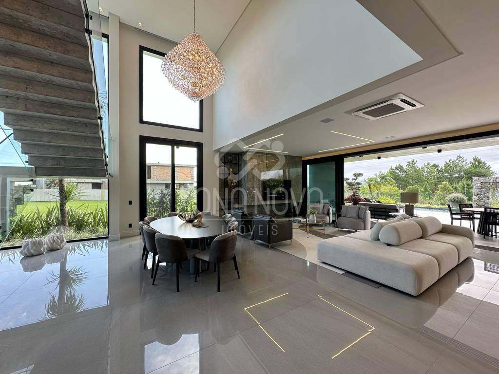 Casa contemporânea junto à área verde, pronta para usufruir no Capão Ilhas Resort! Casa de altíssimo padrão totalmente mobiliada e decorada com muito bom gosto, nova e nunca habitada, com cinco suítes (uma mas com vista para lagoa, uma térrea), Living com os ambientes amplos e integrados, sala de estar com lareira, sala de jantar, cozinha americana com churrasqueira e chopeira na bancada, lavanderia com banheiro auxiliar, todos os ambientes climatizados, esquadrias em PVC, fiz o aquecido nos banheiros e em toda a suíte master, área externa junto à área verde com piscina de concreto + cascata, espaço gourmet, paisagismo completo e fachada imponente com detalhes em pedras.