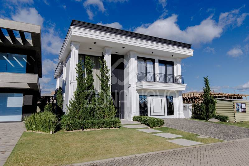 Casa de luxo a beira do lago, no condomínio Sense, em Xangri-lá! Imóvel com 472 M², em um lote de 460 M², está finamente mobiliado e decorado/pronto para uso, composto por 05 suítes (01 térrea, 01 master), dependência de serviços com banheiro, escritório, cinema com banheiro, living com 100 m², pé direito duplo e lareira, lavabo, elevador, som ambiente, monitoramento de câmeras, cozinha americana com chopeira e churrasqueira, lavanderia, depósito, garagem fechada para 02 carros e com espera para recarga de carro elétrico, todos ambientes climatizados e água quente. Na área externa conta com fachada minimalista, lindo paisagismo, área a beira do lago com piscina de concreto, aquecimento solar, jacuzzi e trapiche suspenso no lago.