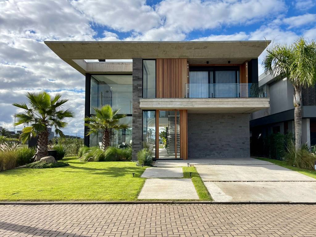 Sobrado de alto padrão no condomínio fechado Sense, em Xangri-lá/RS, condomínio de luxo, com infraestrutura completa e localizado em uma da principais avenidas da cidade. Imóvel mobiliado e decorado/pronto para uso, com 436 M², com 05 suítes (01 térrea e 01 master), dependência de empregada com banheiro, lavabo, living com ambientes amplos e integrados, cozinha americana com espaço gourmet + cozinha auxiliar, lavanderia, área de lazer externa com piscina de concreto, trapiche no lago e churrasqueira, paisagismo, abrigo para carros e fachada contemporânea.