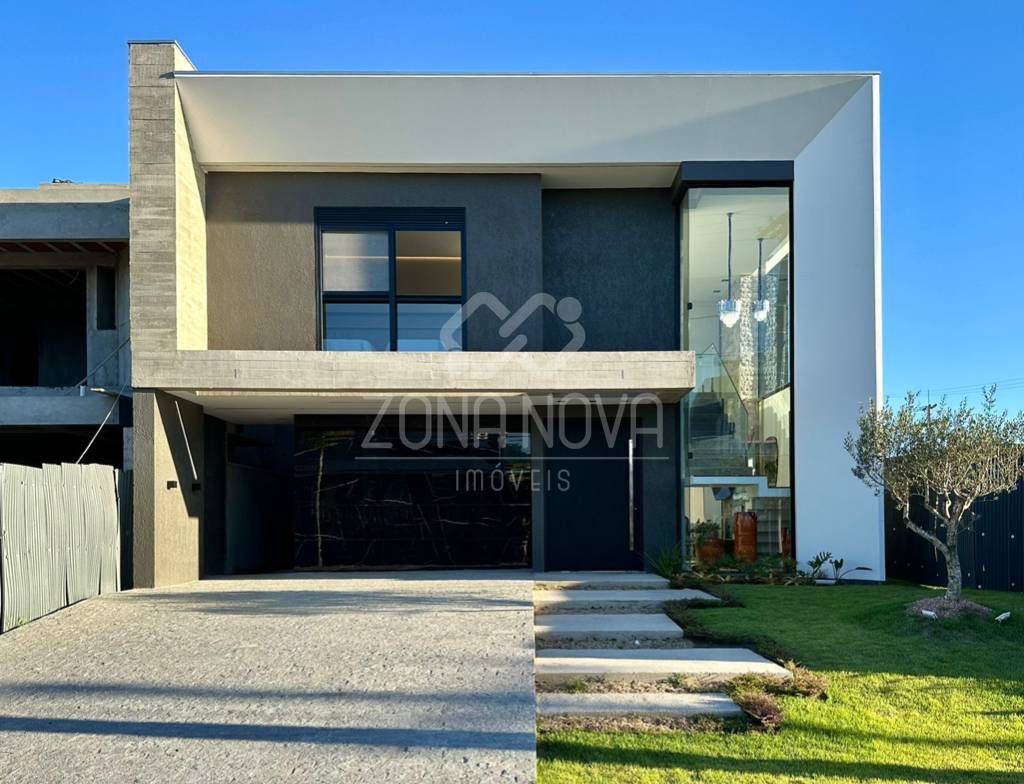 Sobrado beira lago, moderno e pronto para uso no Sunset em Xangri-lá! Imóvel com 243 M², 04 suítes individuais (01 térrea), living com os ambientes integrados, lareira, lavabo, sala de jantar (mesa/sinuca), cozinha americana com churrasqueira, lavanderia, ambientes climatizados, terraço na parte superior com jacuzzi, água quente, área externa a beira do lago, paisagismo, abrigo para carros e fachada minimalista.