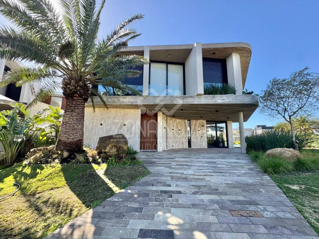 Sobrado novo e nunca habitado à beira do lago, terreno exclusivo ao lado de uma Alameda, totalmente mobiliado e decorado/pronto para usufruir, seis suítes (uma master, uma térrea), Living amplo com os ambientes integrados, lavabo, sala de TV com lareira a lenha e pé direito duplo, sala de jantar, espaço de lazer, cozinha americana com espaço gourmet, cozinha de apoio, lavanderia, ambientes climatizados, alto padrão construtivo, esquadrias em PVC, área externa à beira do Lago com com paisagismo, piscina de concreto, espaços de lazer com outro espaço gourmet, abrigo para carros e fachada contemporânea.
