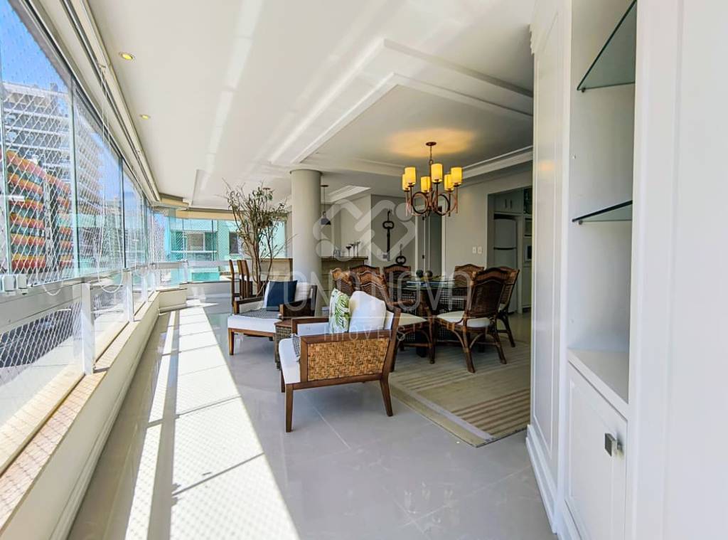 Uma quadra do mar, junto à praça Flávio Boianovski | Apartamento de frente com vista liberada, mais de 202 M², mobiliado/pronto para uso, 03 dormitórios (01 suíte), banheiro social, lavabo, living amplo com os ambientes integrados, sacada de frente, espaço gourmet, cozinha americana, área de serviço separada, ambientes climatizados, água quente, gás central e 02 vagas de garagem. Edifício de esquina com 02 elevadores, hall decorado e zeladoria, localização privilegiada!